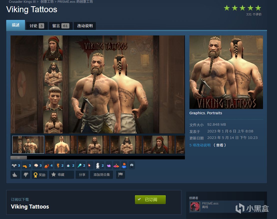 該模組添加了受到刺客信條:英靈殿以及戰神啓發的紋身。