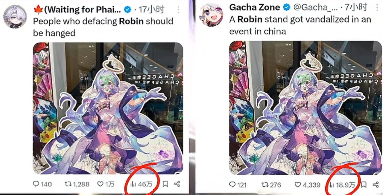 7月初,贵州遵义的某商场内,《崩坏:星穹铁道》角色“知更鸟”立牌脸部被涂写“赵露思”字样,照片经社交平台传播后,玩家群体认定系赵露思粉丝所为,迅速引发大规模声讨