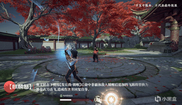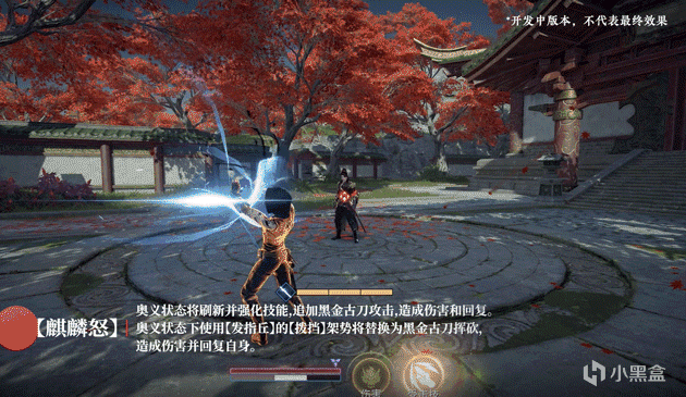 奥义状态将刷新并强化技能,【拨挡】架势替换为黑金古刀挥砍,造成伤害并回复自身。
