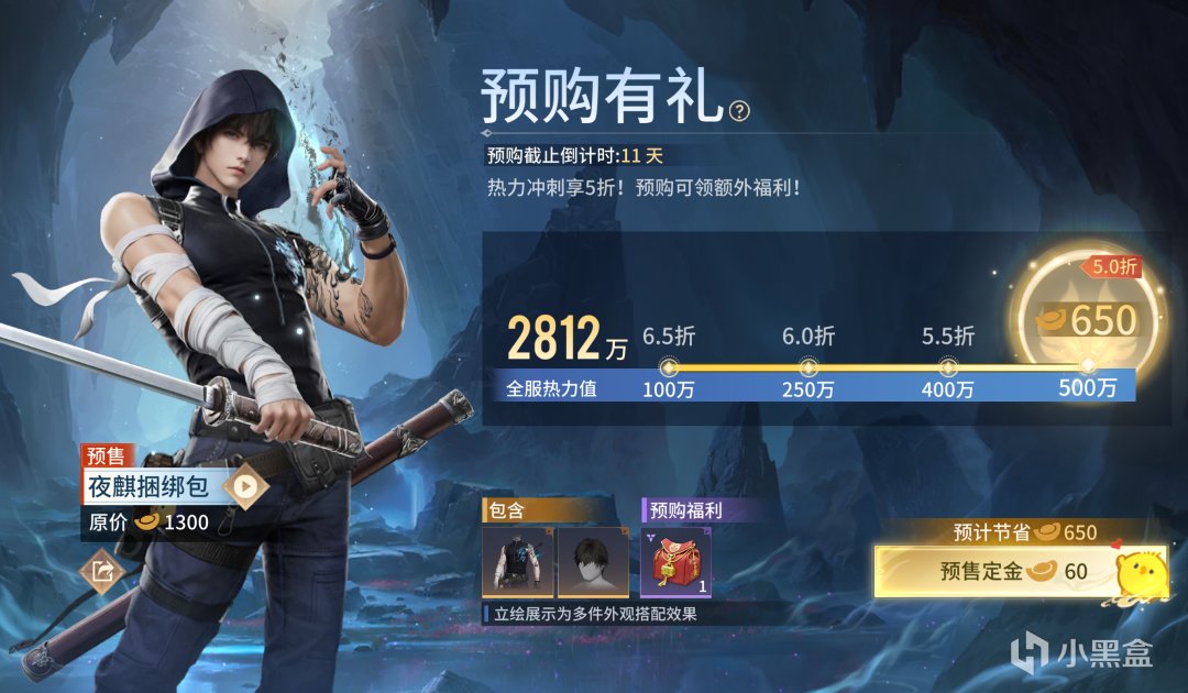 预购期间仅需60元宝即可预定【夜麒捆绑包】,还能领取额外福利【瑞玉宝箱任选礼*1】~