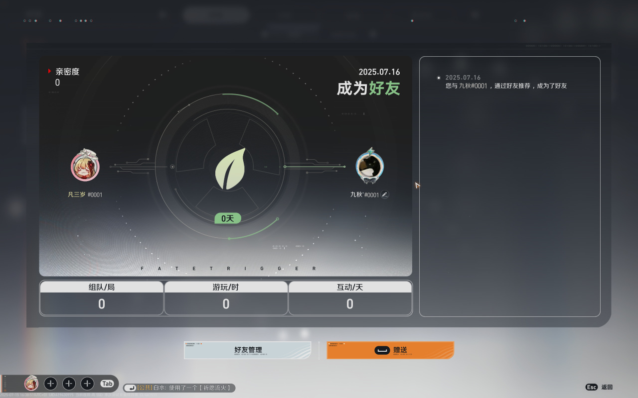 這個功能我沒有深入體驗。但假設這個頁面中間的葉子標記會隨着一起遊玩時間增加長成大樹,假設右邊的記錄板會記錄xxx日,你和xxx一起玩遊戲到凌晨四點並且獲得了第一名;那麼它的作用與意義會進一步提升。