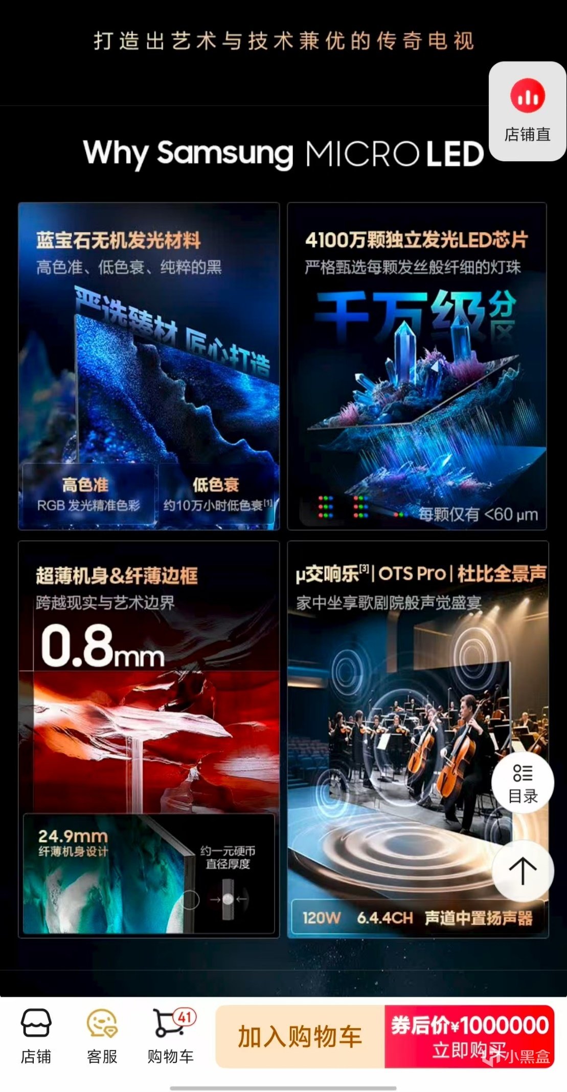 目前最著名的代表就是三星的Micro LED系列巨幕电视。