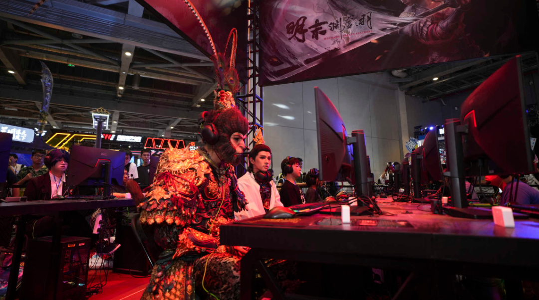 让我最印象深刻的不只有《明末:渊虚之羽》这款游戏的素质,还有它的玩家们。有玩家穿着《黑神话:悟空》的COS,试玩《明末:渊虚之羽》。