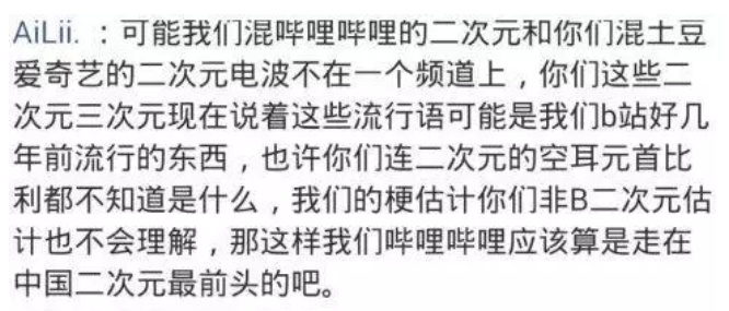 也许是核心二次元缺乏社会认同,基于同类抱团取暖的需要,也许是想要建设热爱乌托邦的愿望,或者是有人在那时就先于资本看到了巨大的商业前景——我更强相遇前两者,彼时的二次元并非时尚单品,其群体(也就是现在的核心二次元群体)是由一群真正的热爱者构成的,带有一定排外性质,对内有高度认同感的群体,他们一般受过良好的教育,综合素质较高,需要有共识性的氛围,由此渴望拥有自己的平台和社区,将自身与大众隔离开来。他们继承了御宅族群体的一些特质,会将彼此视作同类,而不会因为看的动画不同而缺乏包容,当然部分核心二次元们也出现了一些比拼看动画数量的奇怪毛病。