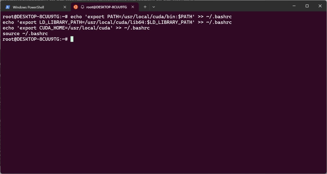 echo 'export CUDA_HOME=/usr/local/cuda' >> ~/.bashrc