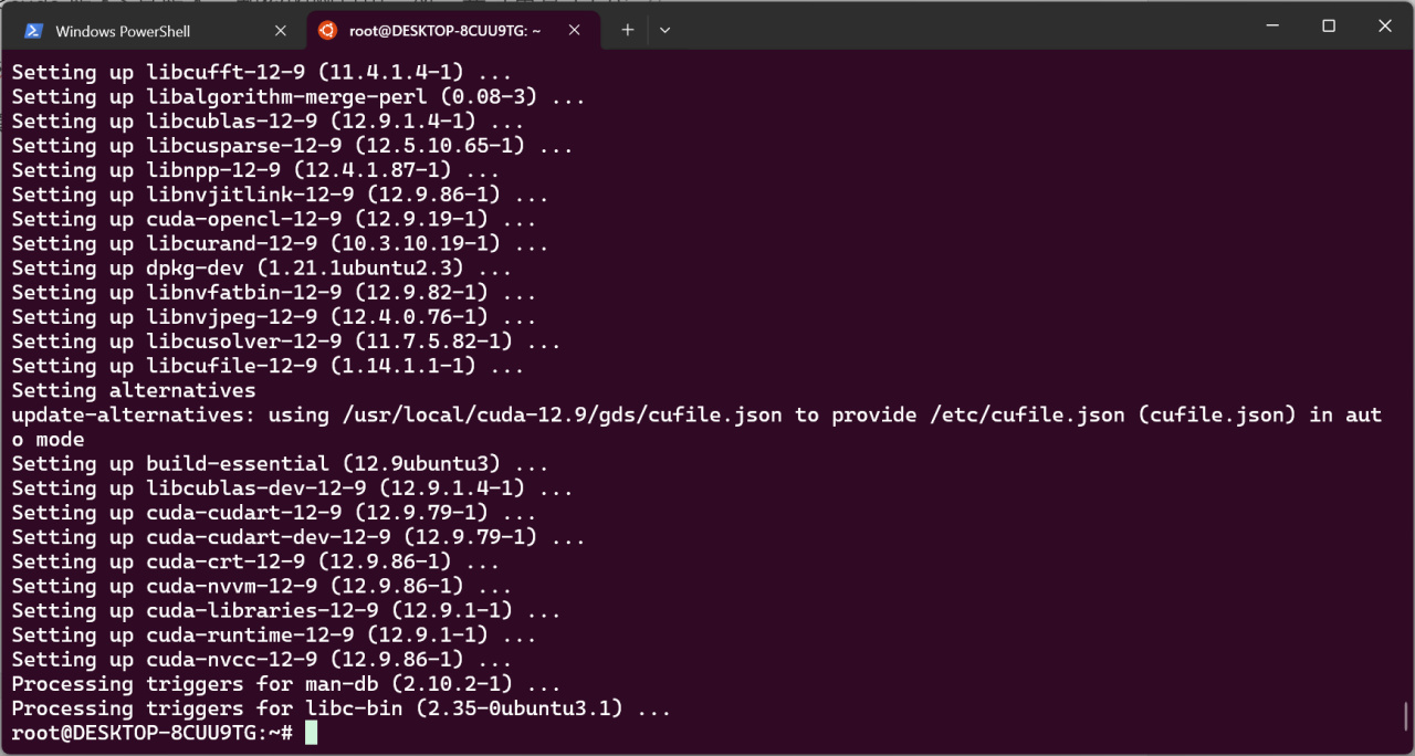 sudo apt-get install -y cuda-nvcc-12-9 cuda-runtime-12-9 libcublas-dev-12-9
