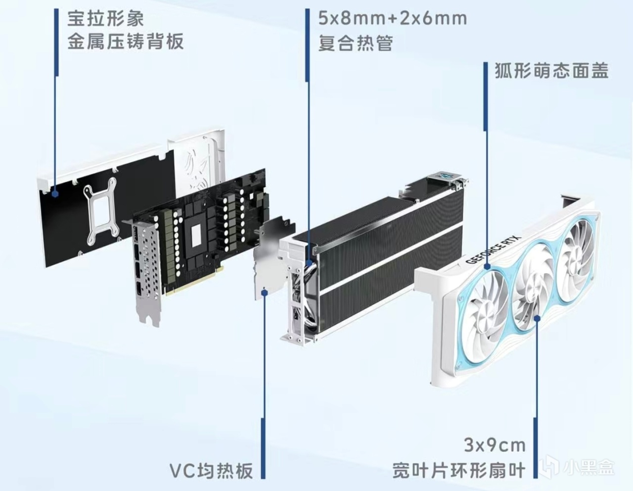 5080雪狐散热为5*8+2*6复合热管,有VC均热板,3*9cm宽叶风扇。