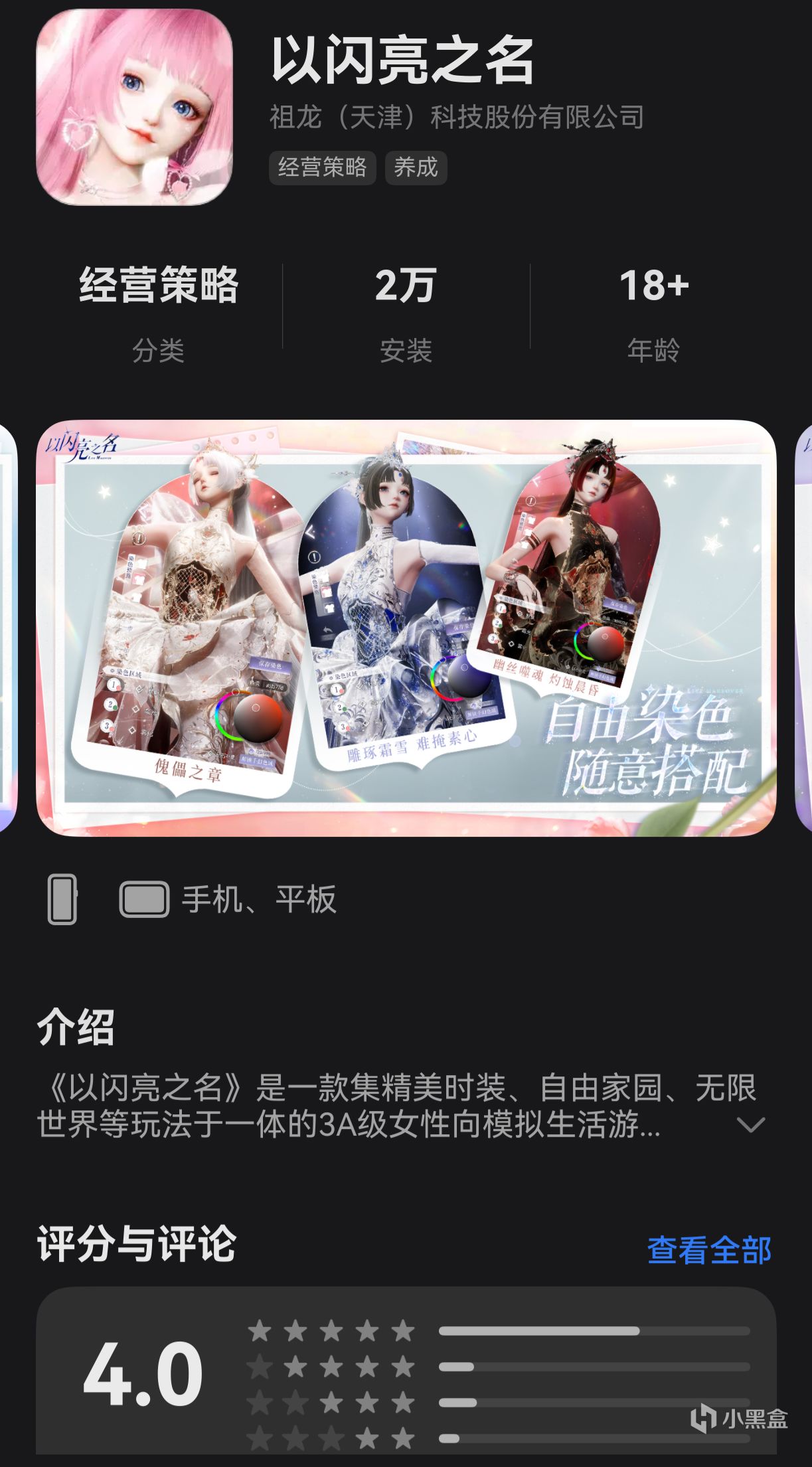 看着挺漂亮的游戏,目前华为应用市场评分4.0