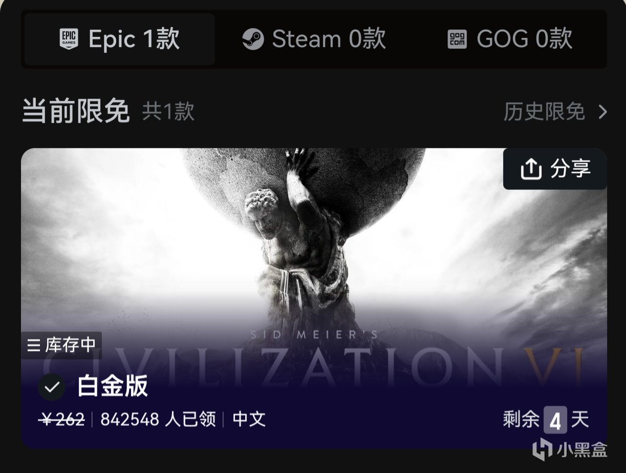 值得一提的是,epic正在送出价值262的文明6白金版,截止时间为2025年7月24日晚23:00,各位盒友不要错过呀