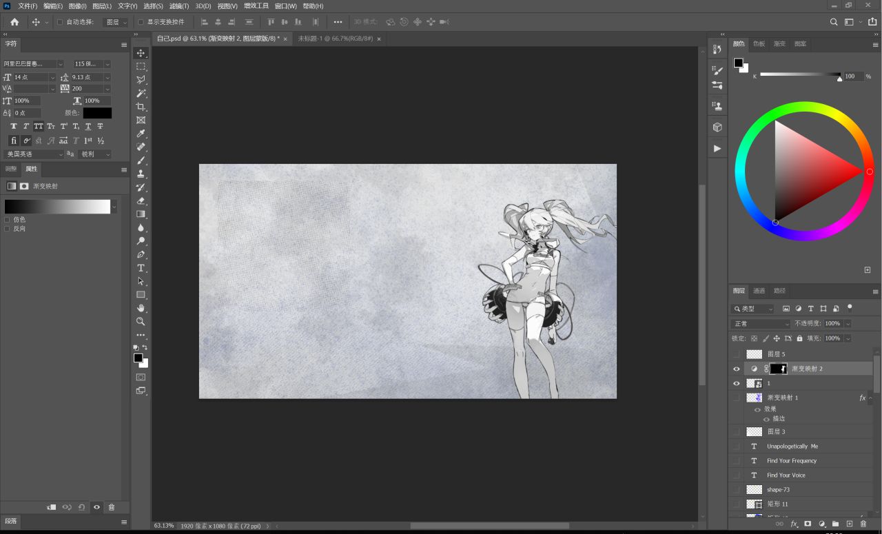 以下这一步也许是本教材对新手而言最难的一部分(添加蒙版与应用一个映射渐变)下面多图演示,下图中标注操作