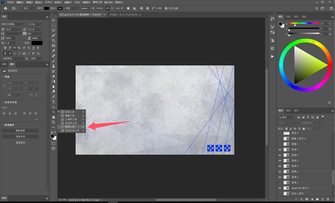 使用直线工具,添加若干个直线,该直线的作用也是引导视觉往左边看。