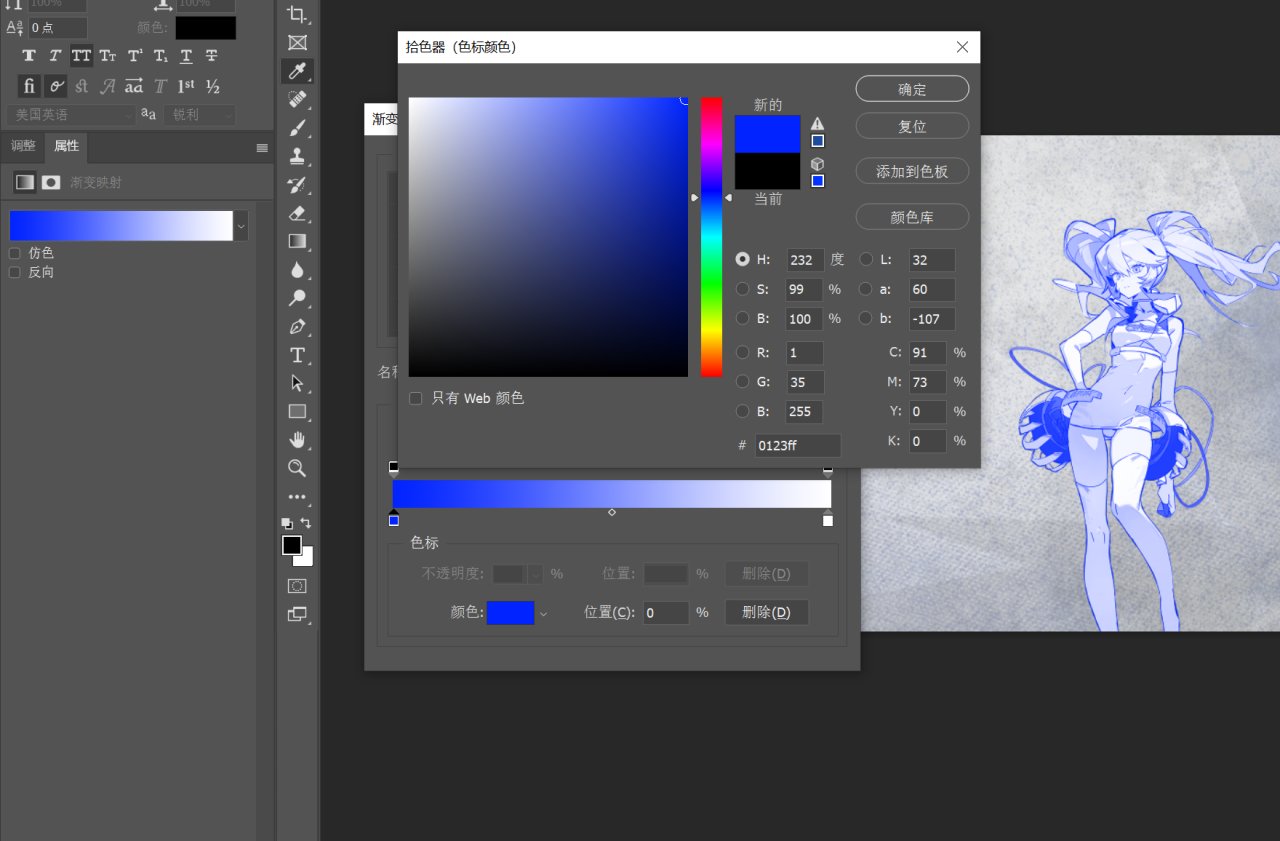 16位色值为0123ff 然后作用蓝色和白色滑块到你满意的颜色为止