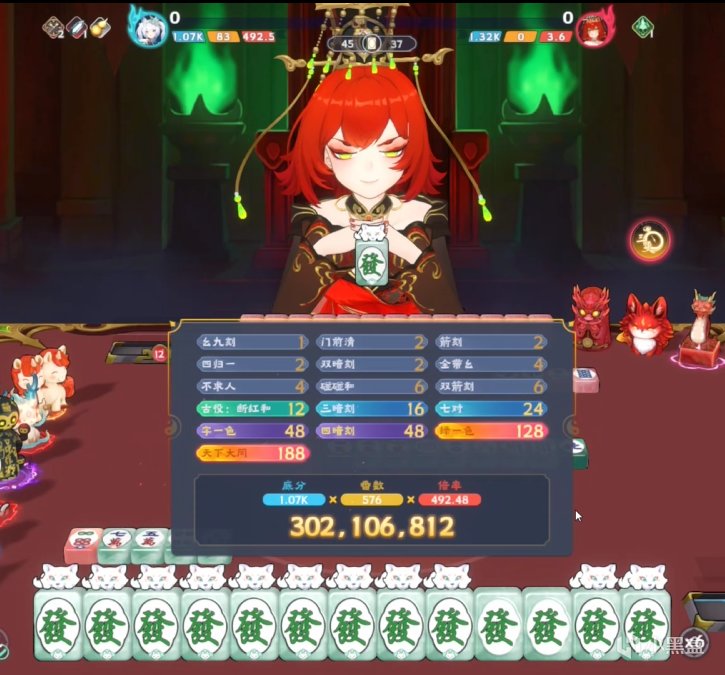 因为马面靠“狐灵”,能胡很多次“天下大同”,也就是一把合起来能达到“上千番”。我们只需要提升:“底分”和“倍率”。