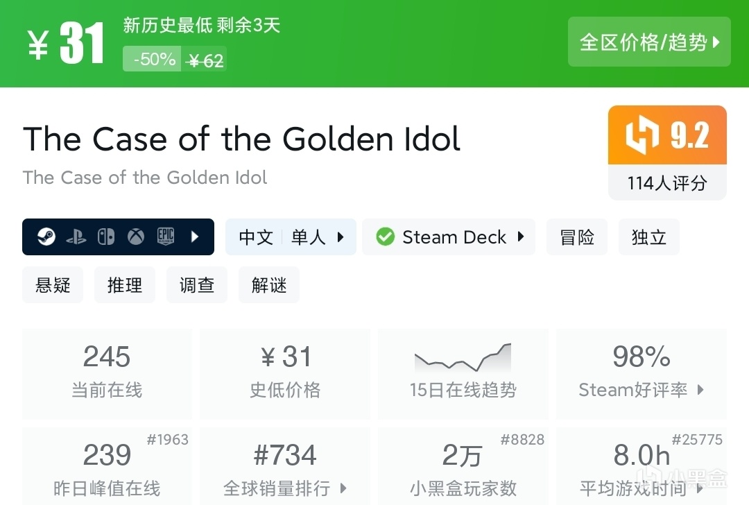 夏促之後,都是一些小遊戲節,下次的大促得等到9月30號的秋促。不過依然有很多遊戲迎來了新史低,同時小黑盒也開啓了大促。