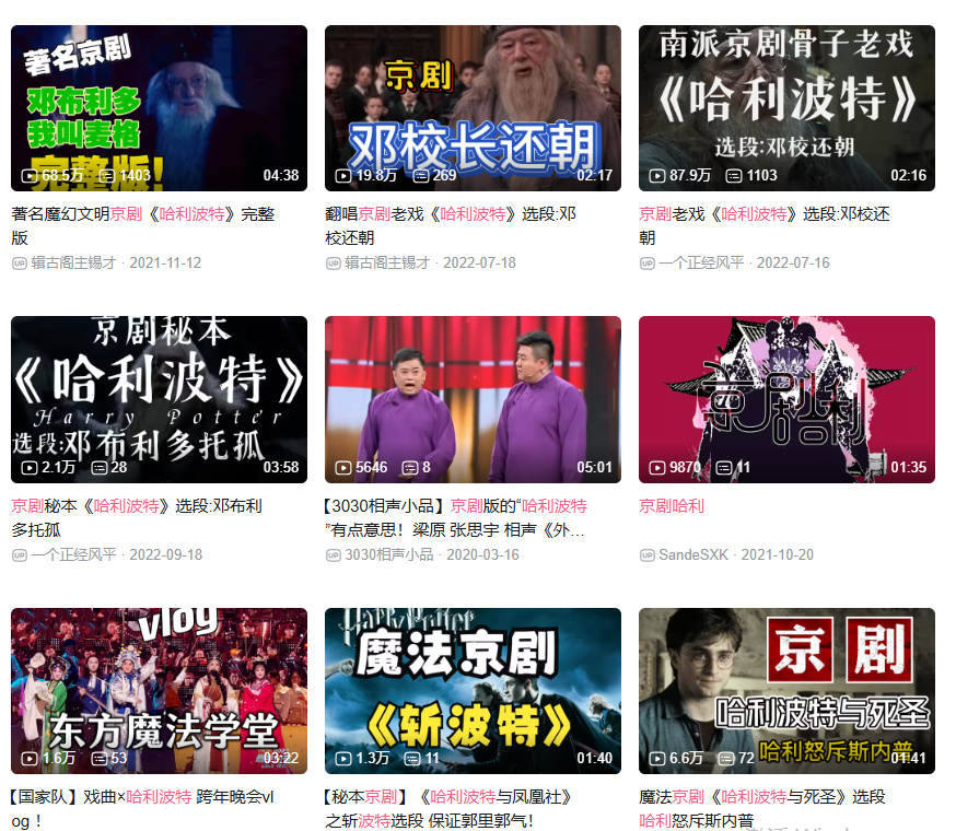 就拿在B站百万播放的京剧选段《阿不思托孤》来说,这一段讲的是故事开篇邓布利多把哈利波特寄养在姨妈家的故事,早在多年前就已经有人借《徐策跑城》的曲调还原了这段戏码,再经过后人用AI配上画面之后,那叫一个地道(生草)。