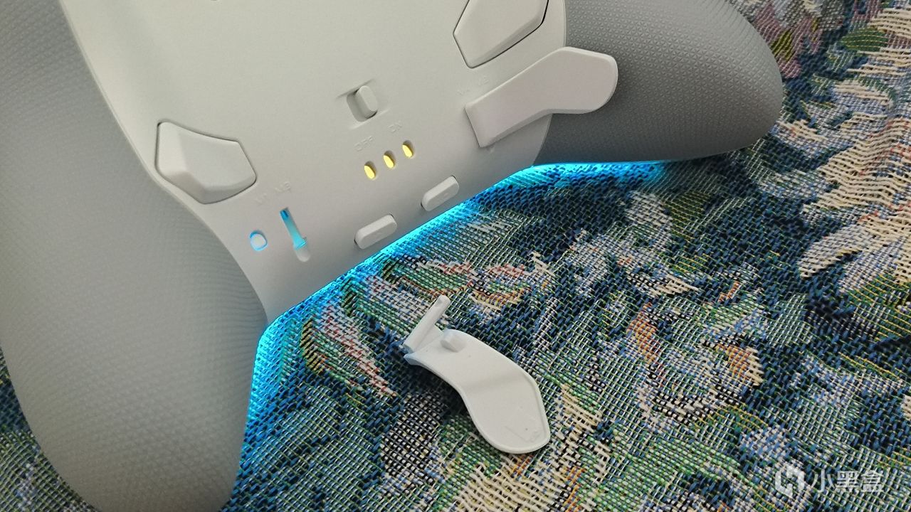 肩键给到了额外的小肩键作为拓展按键。背键也是进行了大改,曲面设计,贴合握把,背键的接触面更大,并且还设计了左右两侧可拆卸拨杆背键设计,目前是只有一种拨片,后续还会陆续更新,想用就按上,不想用就拆卸相当方便,握持起来并不突兀,贴合手指相当舒服。