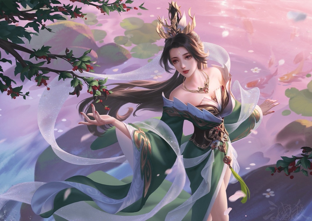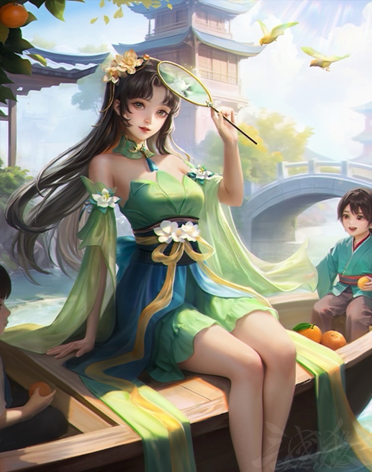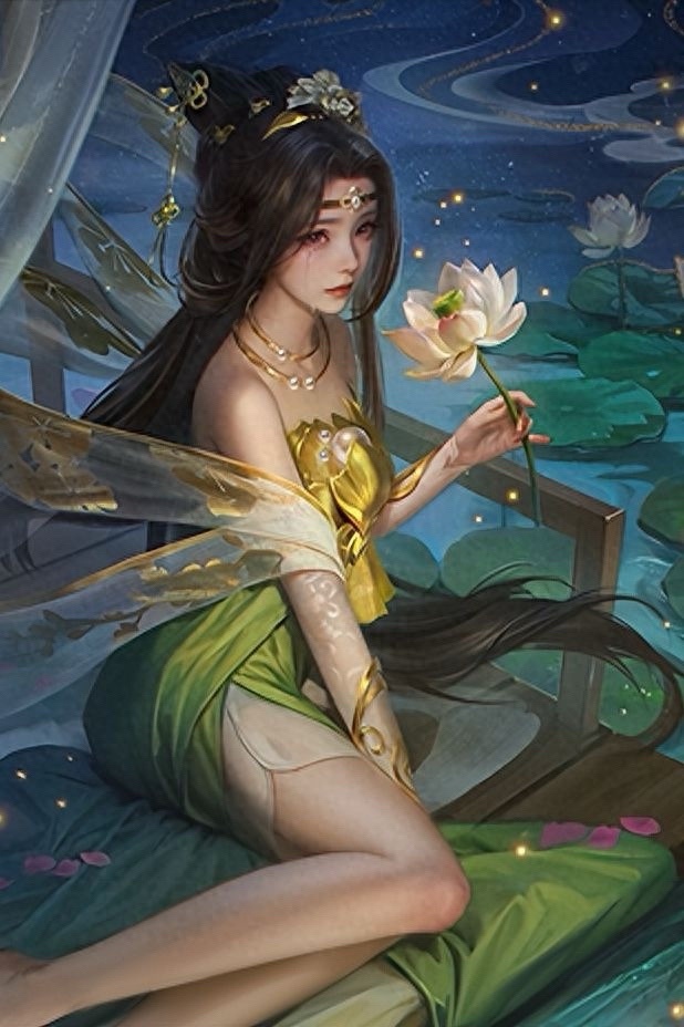 小乔是江东乔公次女,与其姐大乔并称国色。建安四年,周瑜随孙策攻皖城,与孙策分娶二乔,小乔成为周瑜正妻。她与周瑜相伴十一年,育有二子一女。周瑜病逝巴丘后,她青年守寡,抚养遗孤,正史未载其结局。其形象因苏轼“遥想公瑾当年,小乔初嫁了”的词句及《三国演义》渲染,成为英雄美人的经典符号,象征周瑜“雄姿英发”的短暂辉煌,亦承载了乱世中绝世红颜的寂寥底色。