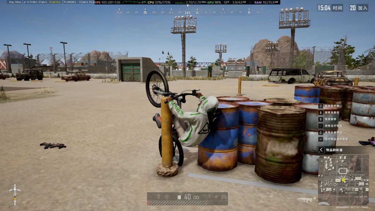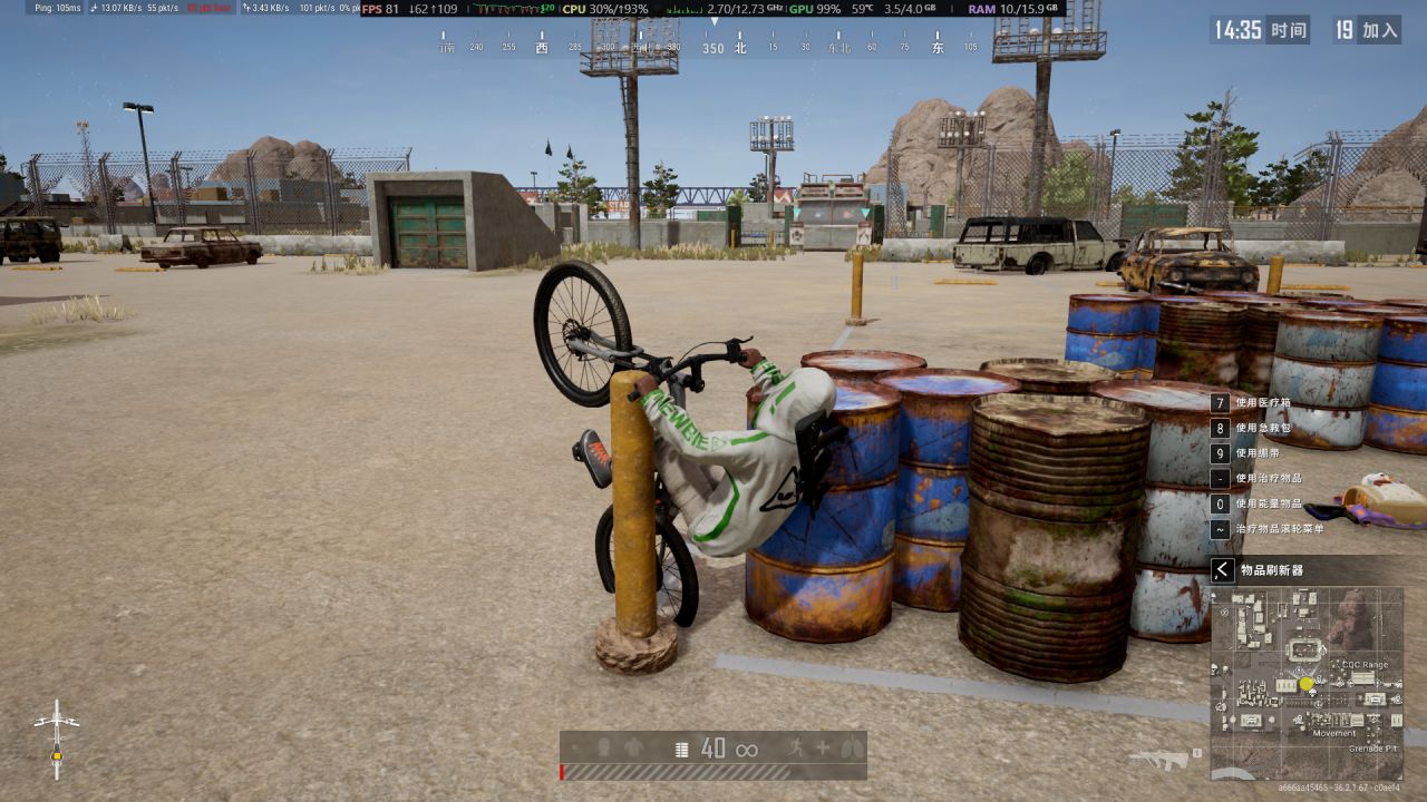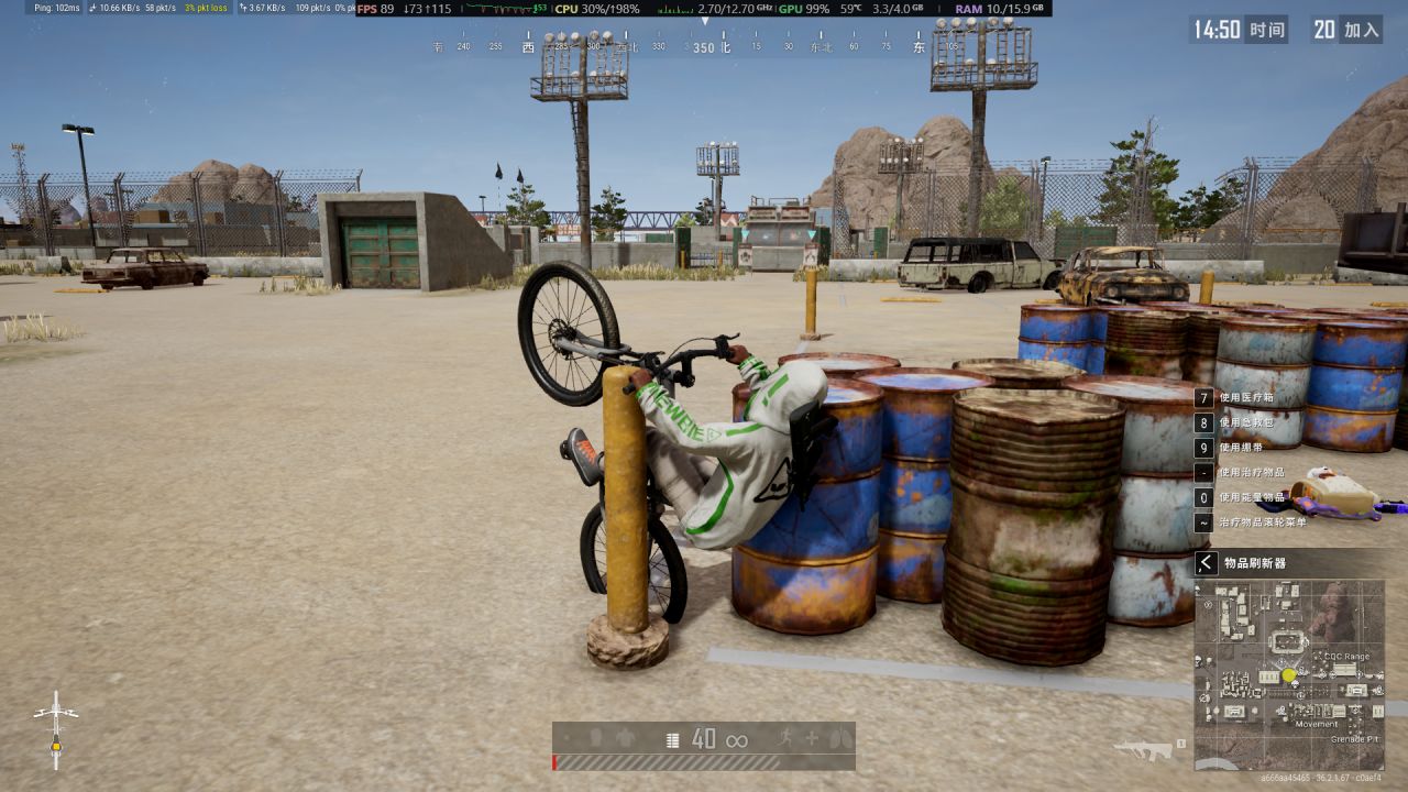 《绝地求生》训练场 高画质80帧 中画质90帧 低画质105帧 超低画质115帧