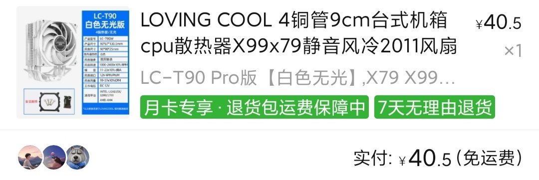 散热采用LOVING COOL四铜管散热器,pdd40元购入,白色喷漆加无光设计,低调也好看。