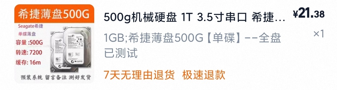 存储采用金泰克120G固态硬盘+500G机械硬盘,分别是同城35元自提和tb20元购入,固态用于安装系统和软件,机械硬盘负责资料和游戏的存储。