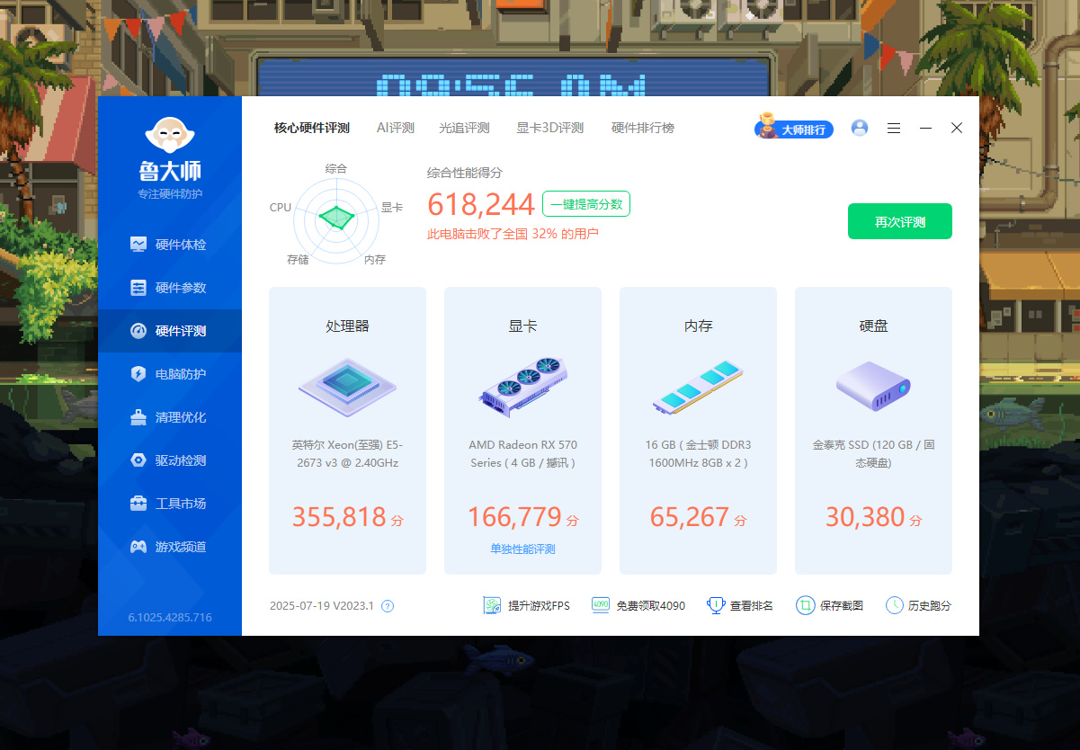 先来个喜闻乐见的娱乐大师,跑分偏低可能是被硬盘跟内存拖了分