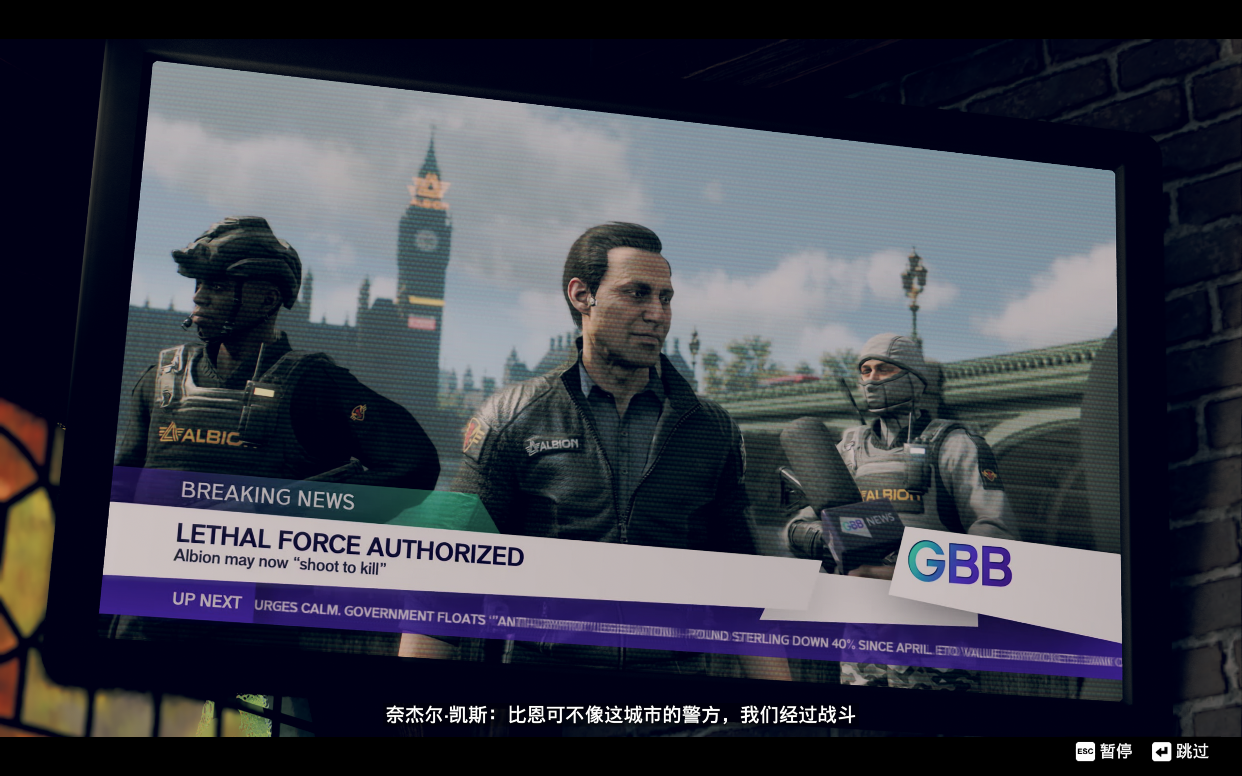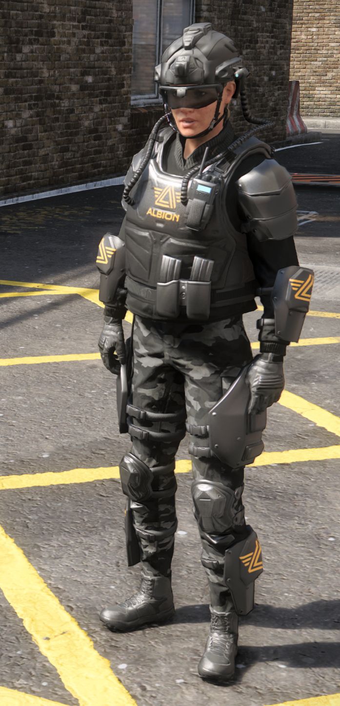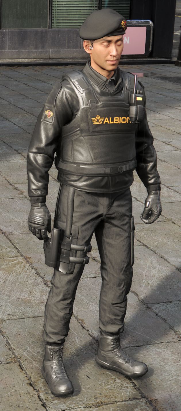 阿尔比恩是一家私营的军事公司,旗下的雇佣兵遍布伦敦的每一个街头,伦敦的所有安保设施几乎都在使用他们的雇佣兵人员,由于女王决定无限期的延长阿尔比恩的伦敦治安工作,因此在可预见的未来,他们作为伦敦当地执法机构的情况将一直持续下去。为了保障伦敦的安全,阿尔比恩也接入了ctOS系统,同时又和SIRS“信号情报应变局”合作,在伦敦街头增设了几千个摄像头,他们会审视每一位伦敦公民的数据去保证那些人不会越过红线,区域和区域之间的信息联动会告知每位公民哪一块区域是安全的,而哪一块区域的犯罪率相比之前又上涨了多少,同时在伦敦街头的大道上设立多个检查点,任何车辆或人员通过都会经过扫描,同时在街头设立人员检查哨和流动巡逻,每位巡逻人员也都配备了身份采集器,可以不定时的进行随机身份检查。除此之外,阿尔比恩也拥有大量的无人机,这些无人机也会每天在伦敦道路的上方飞行,以便响应任何突发的违法事件。这些无人机的系统也同样接入了ctOS,在无人机飞行的同时会对每位居民的脸进行扫描,通过图像识别和信息库进行联动,以判断这名人员是否有过违法情节,一旦发生违法状况,这些无人机便可以立即响应,所有无人机都配置了可接收语音的人工智能和最新的人像标靶技术,保证射出的每一发子弹或是电击弧都可以准确的打到犯罪分子身上。