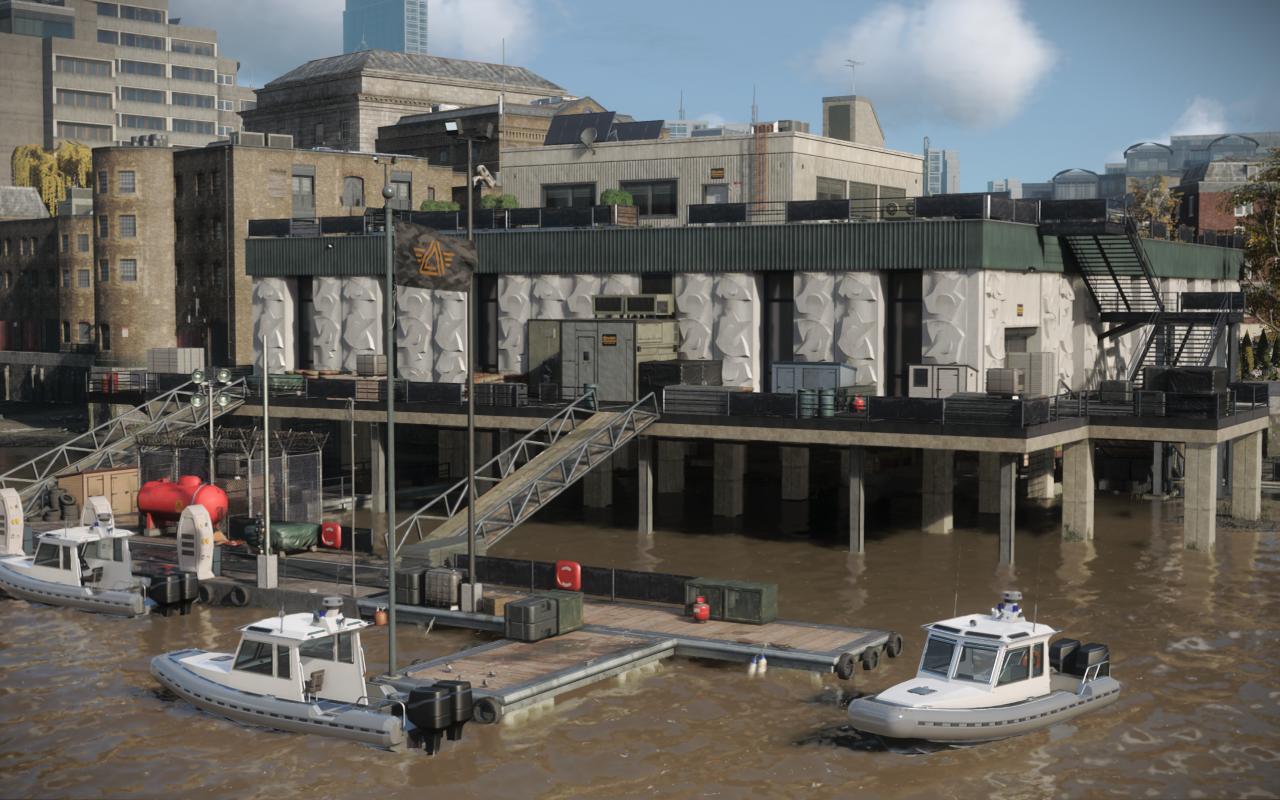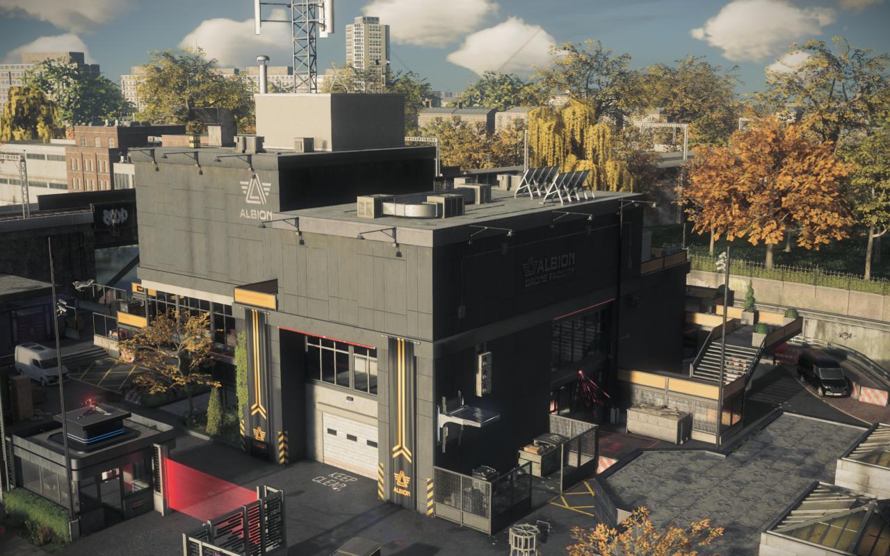 这座造型前卫的设施配套分区十分齐全,基本上可以算作是阿尔比恩的“总”局,它的占地面积是所有分局中最大的,它拥有娱乐室和多个办公区,同时该设施也是整个伦敦境内的无人机主站点,这座设施有两个无人机召唤停机坪,以及一个用来指挥的中央指挥大厅。
