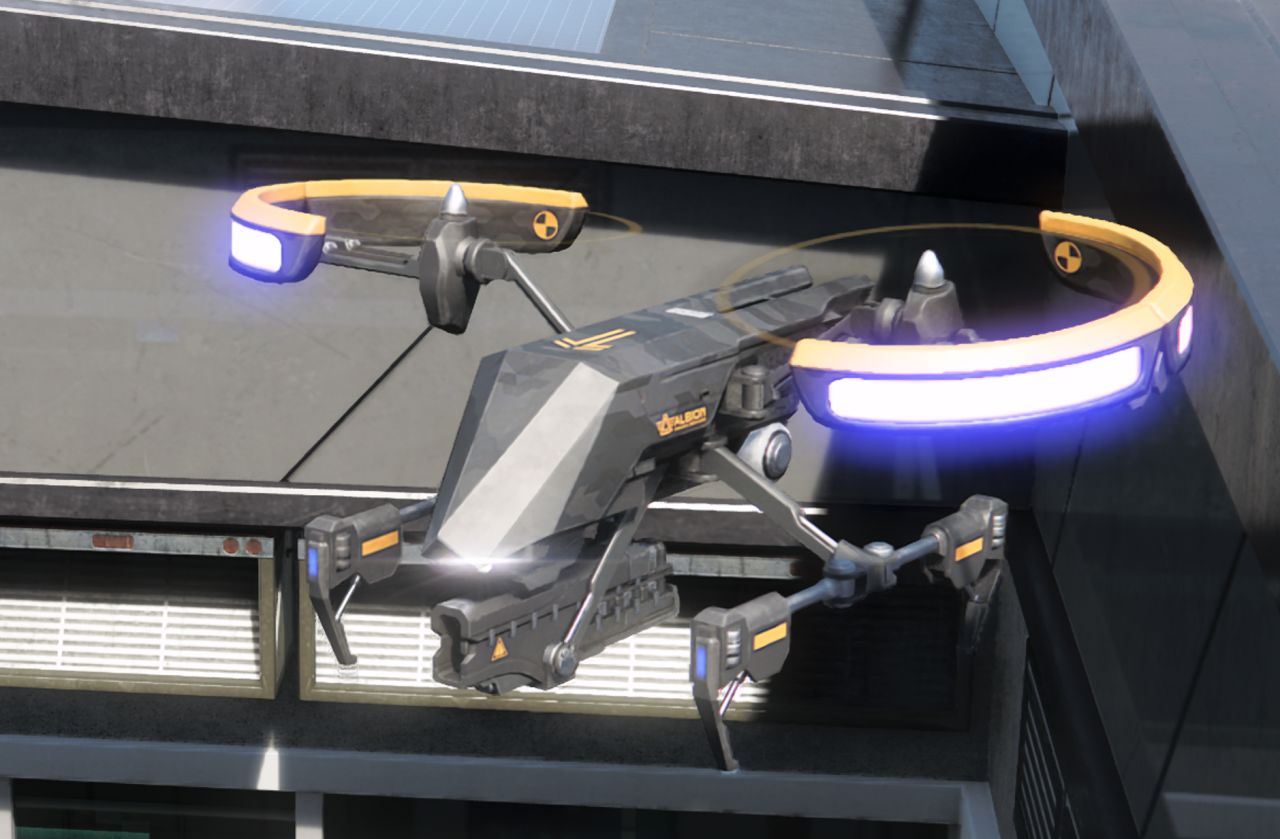 镇暴无人机会在这一等级被派遣,镇暴无人机有两种模式,在日常巡逻时,它的机体和螺旋桨是完全暴露在外的,当发生紧急状况后,它就会开启警戒模式,在很远的距离就能听到它开启时的警报声。机身上的移动护甲会立即向前移动拼接成一块完整的防护罩,将机身完全保护,螺旋桨也一样。护甲在遭受一定攻击后会脱落。