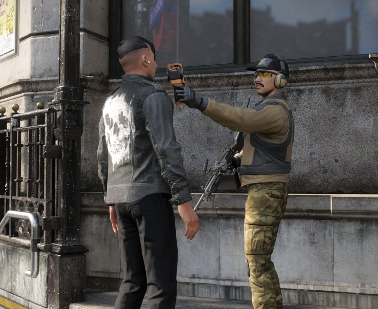 “守望者”雇佣兵现在会加入战场,“守望者”配备了防弹背心,头部带着一顶黑色鸭舌帽和一副战术耳机,裤子拥有一对护膝模块,他们的中黄色战斗服在经常阴天的伦敦十分显眼,虽然他们的防护配置与普通雇佣兵一样,但防御力明显要比前者好一些。“守望者”使用M249轻机枪在犯罪现场提供火力压制,他们会在合适距离采用半跪姿态进行精准射击。