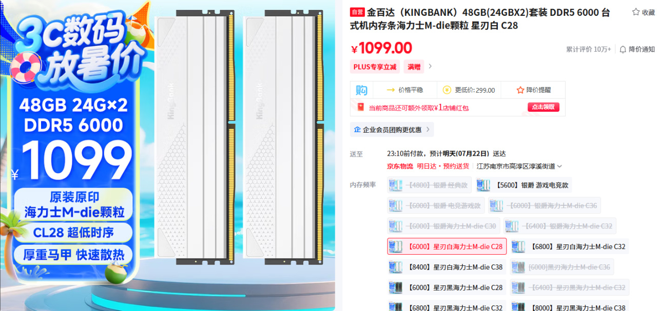 而代价呢?以测试内存为例,现在同品牌C36国产颗粒内存,和C28海力士颗粒内存相比,差价都是300-500元: