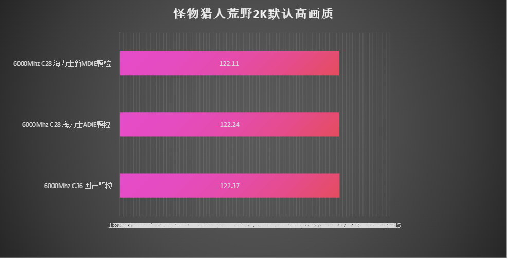 然后是硬件鲨手怪物猎人荒野,2K默认高画质,三款内存的帧数也是小数位的差距