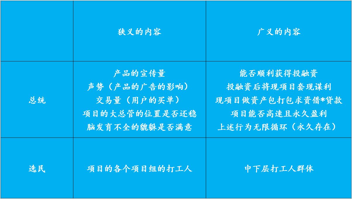 简单来说,项目就是总统。打工人,也就是你,只是同时也只能是、仅仅是参与投票的普通民众。
