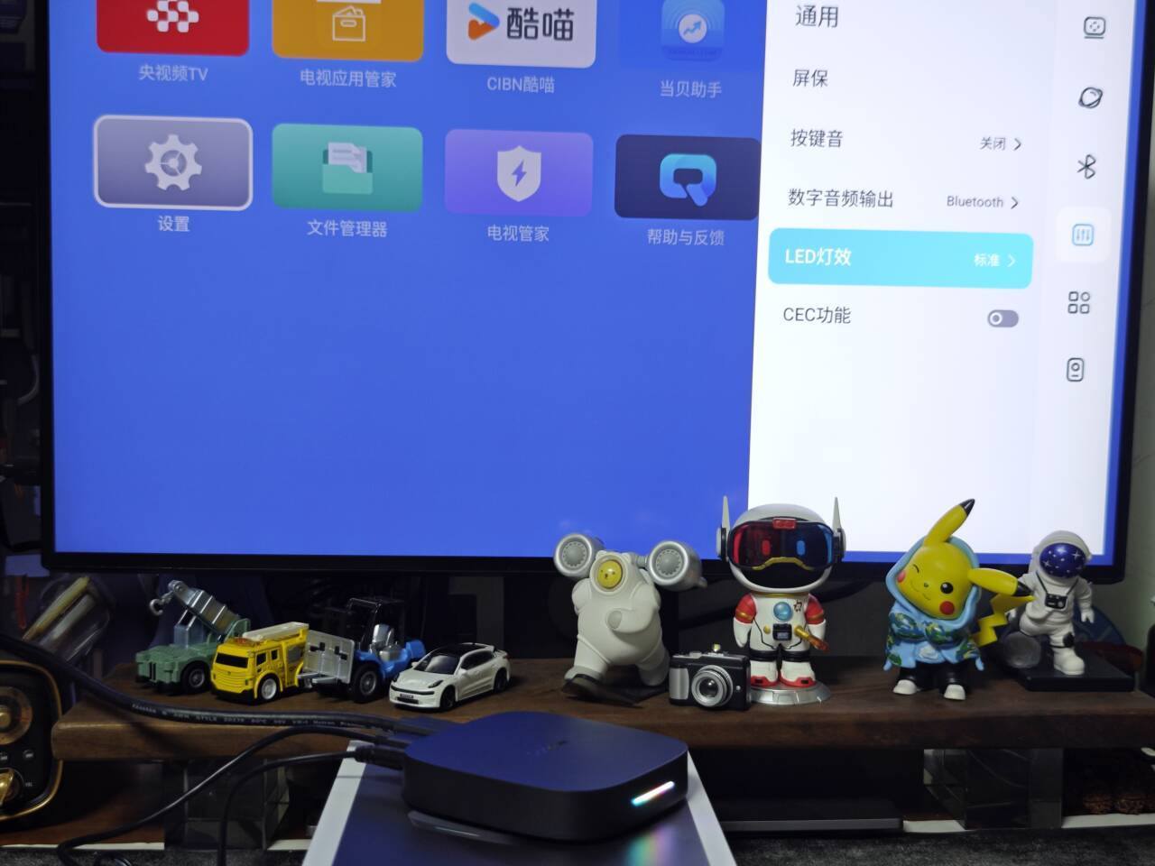 4GB DDR4高性能内存和64GB eMMC超大存储空间的组合,让多任务切换更为流畅,也能轻松容纳海量应用及游戏,彻底告别内存焦虑。在解码能力上,当贝 H5Pro 更是表现出色。它支持超强的 8K 解码,内置的 G310 V2 图像处理器能逐帧精细处理画面,重塑画面丢失的纹理和细节。我特意测试了几部8K 分辨率的视频,虽然家里的老电视最高支持4K,但通过H5Pro 的处理,画面的清晰度和细节表现依然远超之前,每一个细微之处都清晰可辨。