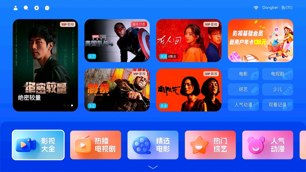 系统界面简洁直观,老人小孩都能轻松上手。极简 UI 设计,全方位代码重构,下滑直达我的应用,方便快捷。同时,它不仅可以下载当贝市场里的众多软件,还支持自由安装各类 TV 端安卓第三方应用,扩展性极强,这个就大大提升了我们的使用体验,毕竟现在各种第三方应用可以很方便我们进行追剧、观影和看直播。