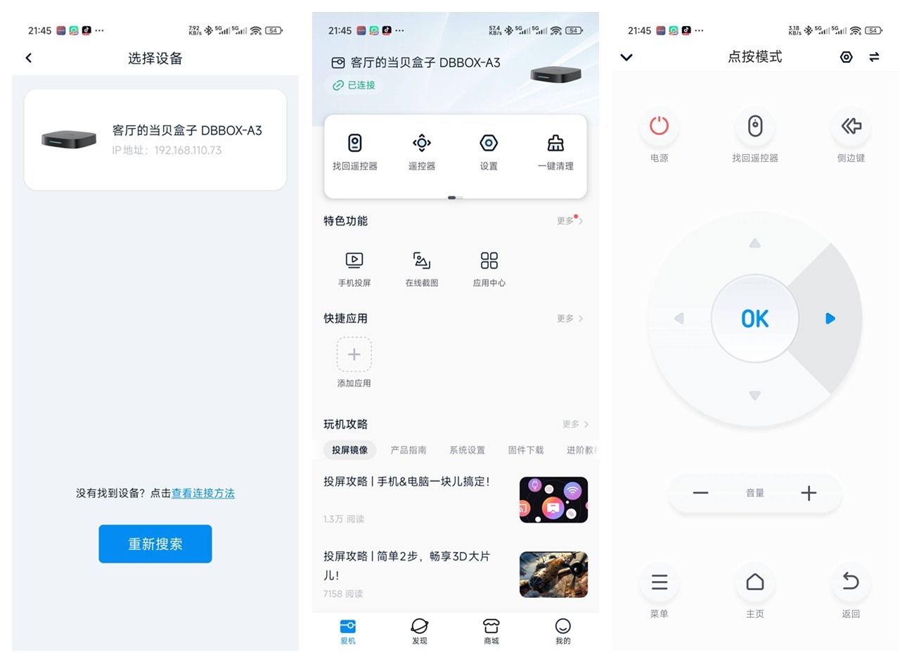 当贝H5Pro可以很方便的通过“当贝家”APP进行遥控、清理、投屏、在线截图等各种常见操作,这也是很方便的一点,可以完全脱离遥控器使用。