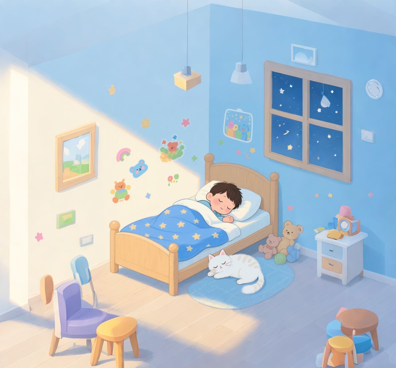 建立睡前仪式: 放松活动(如热水澡、阅读、冥想),避免睡前接触蓝光(手机、电脑)和刺激性活动/饮食。