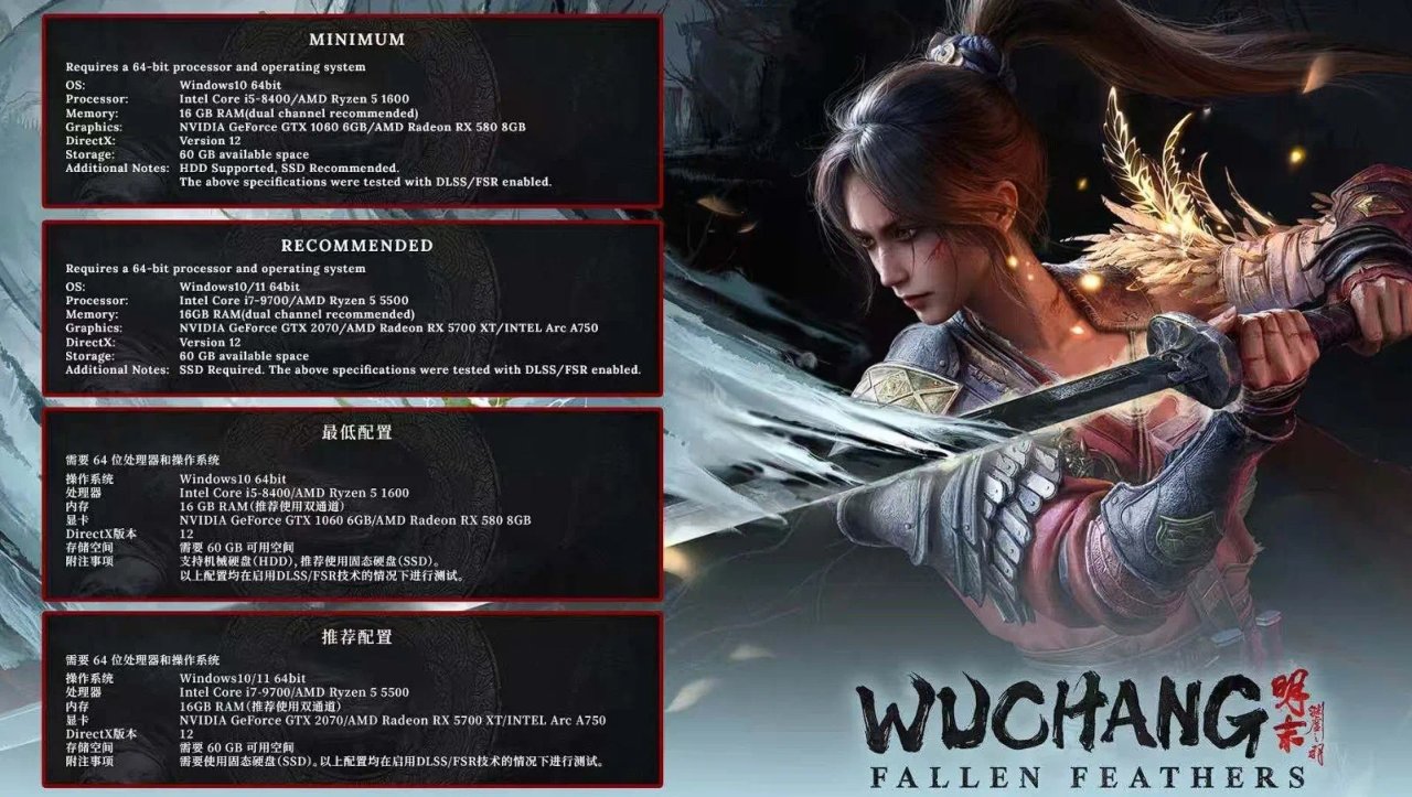《明末:渊虚之羽》官方目前也已经公布了最低配置清单,大家准备玩的可以参考一下。
