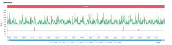 我们又拉了一下测试中的 CPU 频率,看看 CPU 有没有在开风扇的情况下做更激进的调度 —— 结果是并没有。