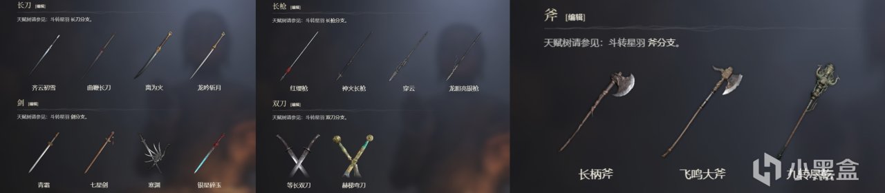 比如目前已知的武器大类包括长刀、剑、长枪、双刀和斧五种,每个分类下均有多种武器可供选择↓