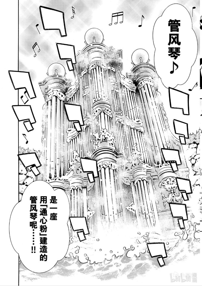反观丁泰凤这边,他把通心粉做成管风琴,中间能进入大量的空气,正是这样的美味配合音乐一起,才让盘古大人返老还童。但说实话,我写到这的时候都有些绷不住了,这跟料理还有关系吗?简直就是纯口胡说书了。