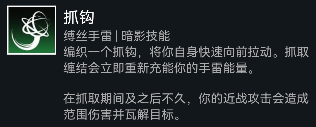 手雷选择沐浴雷或勾爪,这里比较推荐勾爪,可以同时享受手雷和近战的属性加成,并且在你脚滑时救你一命