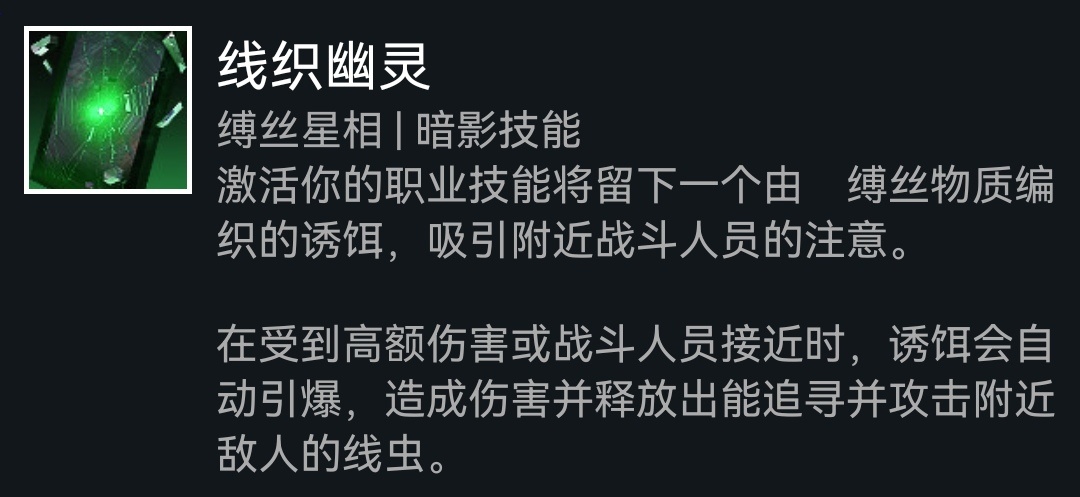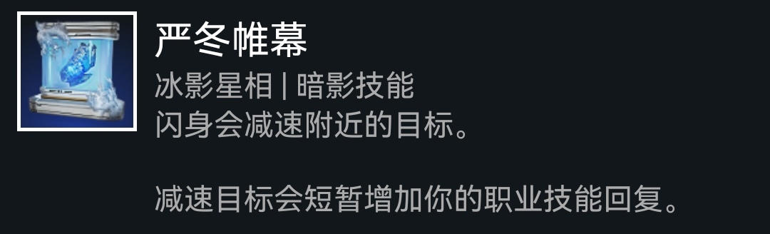 下面是星象的选择,由于我们需要频繁的使用闪身,我们可以带上严冬帷幕加速回转,然后再带上线织幽灵或潇洒行刑者保证生存手段,这两个星象现在都有弊端,线织幽灵会延长闪身40%冷却,潇洒行刑者比之前少了一个碎片槽,取舍看个人
