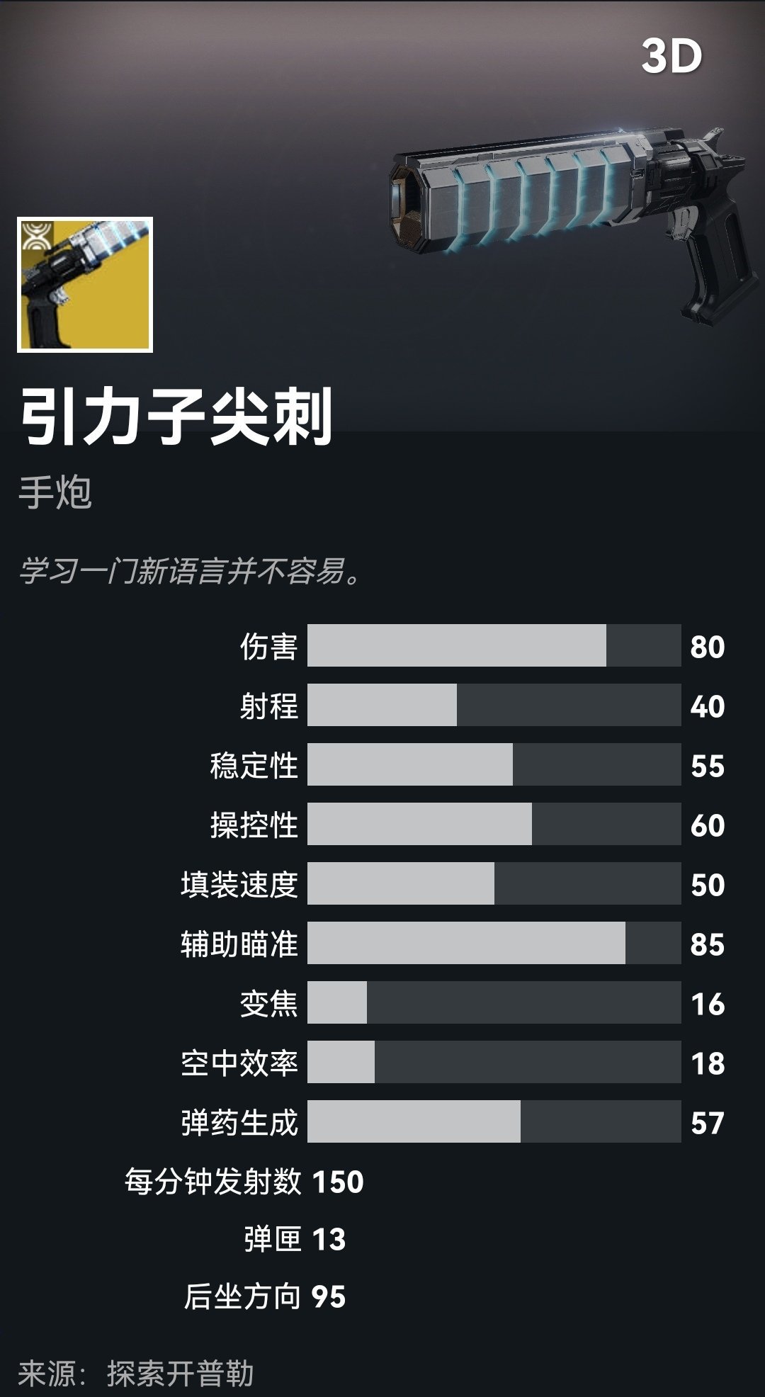首先,三层凌光偏转就是30%的增伤,但这仅限与冰影电弧和狼王上,这套配装主要是通过对白蛋武器增伤清怪,因为当前版本绿弹弹药经济较差,所以武器我选择新出的异域手炮引力子尖刺,该金枪可以在冰影和电弧之间切换,无论怎么切都可以吃到增伤,并且引力子尖刺属于棒鸡严选,自带10%能量武器增伤,在武器属性提升还有15%增伤,如果在腿部带上两个电激涌还能提供17%的增伤,如果不算上武器属性,单是这些就有72%增伤,更何况我们还能把武器往上堆,这让我们的武器变成一门重炮💥