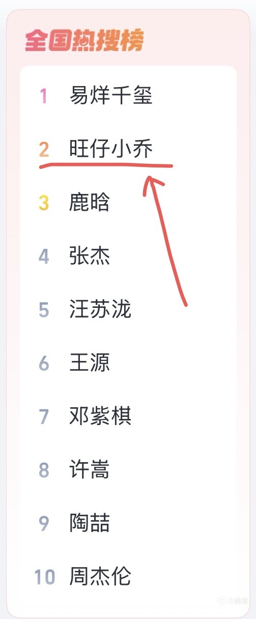且在搜索排名中,旺仔小乔也是力压鹿晗,张杰,汪苏泷等一众歌手,热度榜来到了第二名