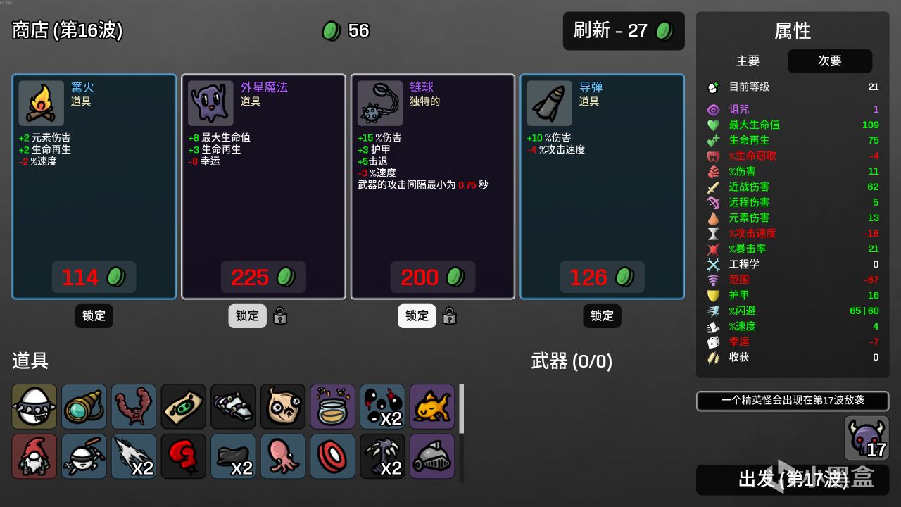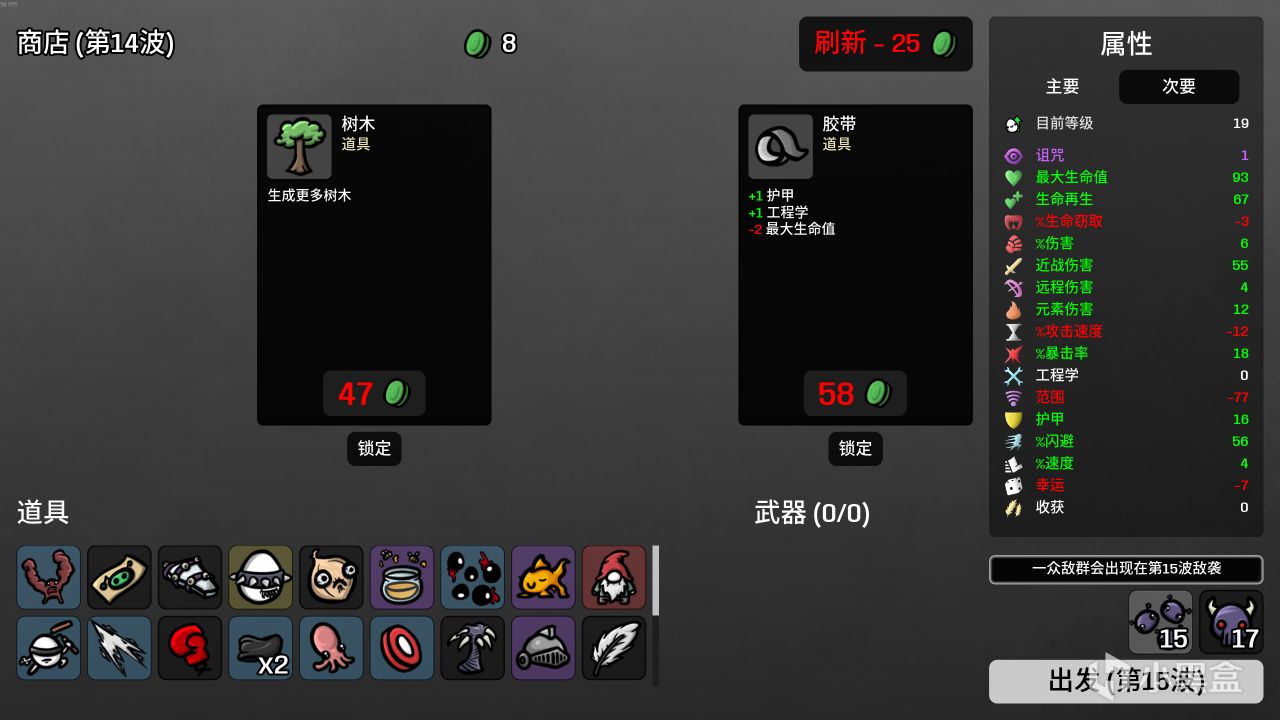 後面的波次基本就是隨便過了,走閃避流的話輸出少點,可以拿其他道具補點輸出。不過不拿獻血或者拖拉機的話,公牛到後面是很窮的,一般也更新不了幾件新裝備。