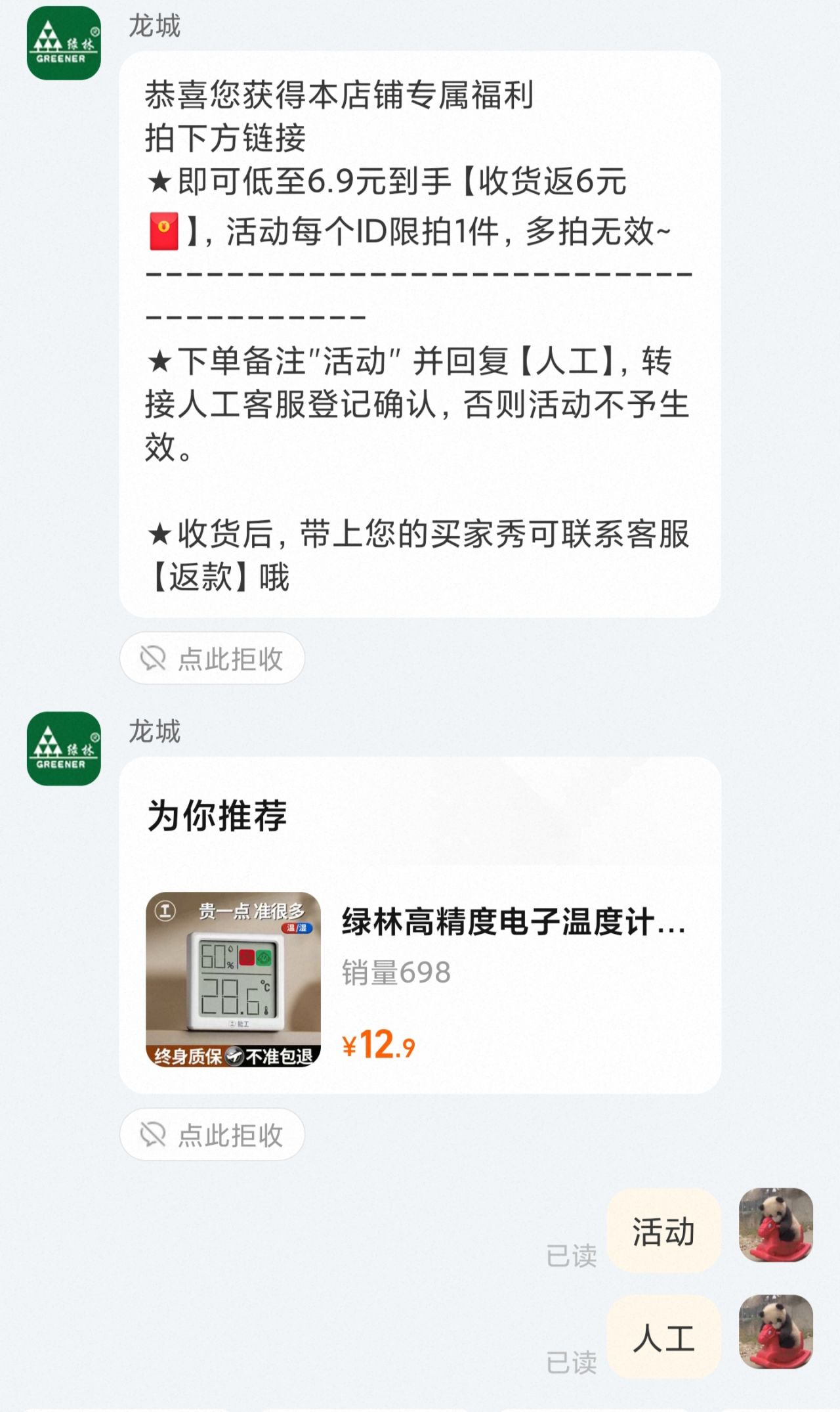 温度计是因为客服说有活动6元到手,以为碰上好事了,就直接买了