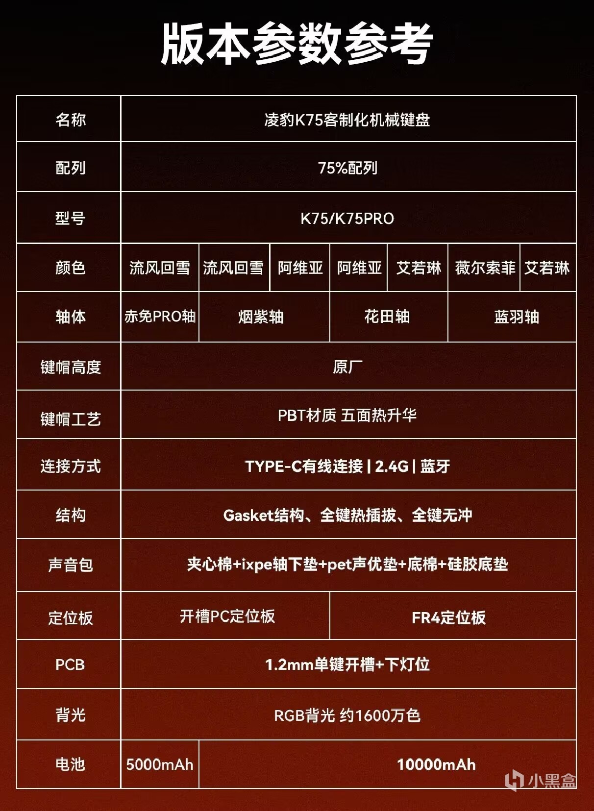 基本上不管你平时喜欢什么风格,都可以在K75中找到最适合自己的那一款。