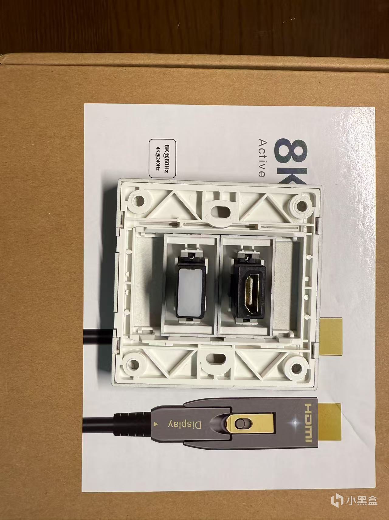 还有一点是主包在主工作区和电视区各留了两个HDMI面板(一来一回双向),考虑到既然要开槽就在硬装里做了,用有线的方案来代替类似无线传输(比如Moonlight + Sunshine)的方案。HDMI面板和网线面板不一样,不需要自己打线,直接购买成品面板,两头都是公的hdmi线就可以。主包买了两条长八米的HDMI2.1的光纤线,这里也有两个知识点,第一个就是光纤线和铜线不一样,是区分正反的,线上会写Source(In)和Display(Out)端,另一个是成品线最好买接口可以分拆的,HDMI的线头在2cm左右,很多线管(常见1.5 2.0cm内径)都没法穿过去,主包新买的可分拆的线的小头大概是1.3cm,这样就很容易穿过去。这线价格有点小贵,属于战未来了,现在很多显示器的HDMI2.1的接口也都是阉割的,低配一些的显卡也带不动,因为考虑到埋在墙里的更换成本就直接一步到位了。