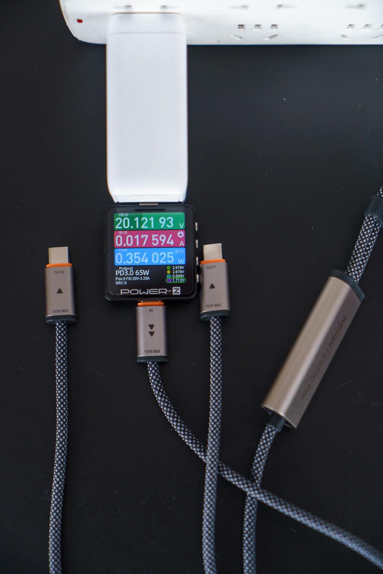 可能有不少和我一样的数码爱好者,抽屉里有各种品牌的手机时不时拿出来玩一下,对应的原厂充电头也很多,但是插排位置却很紧张,那有没有一种方案既节省插排空间又可以利用到各自品牌的私有协议快充?有,那就是协议转换充电线,这期先介绍一下来自米物的小米私有协议转换充电线-米物超级充电线(一拖二) CB510Pro ,比如可以把VIVO的充电头转换成带有小米私有协议的充电头