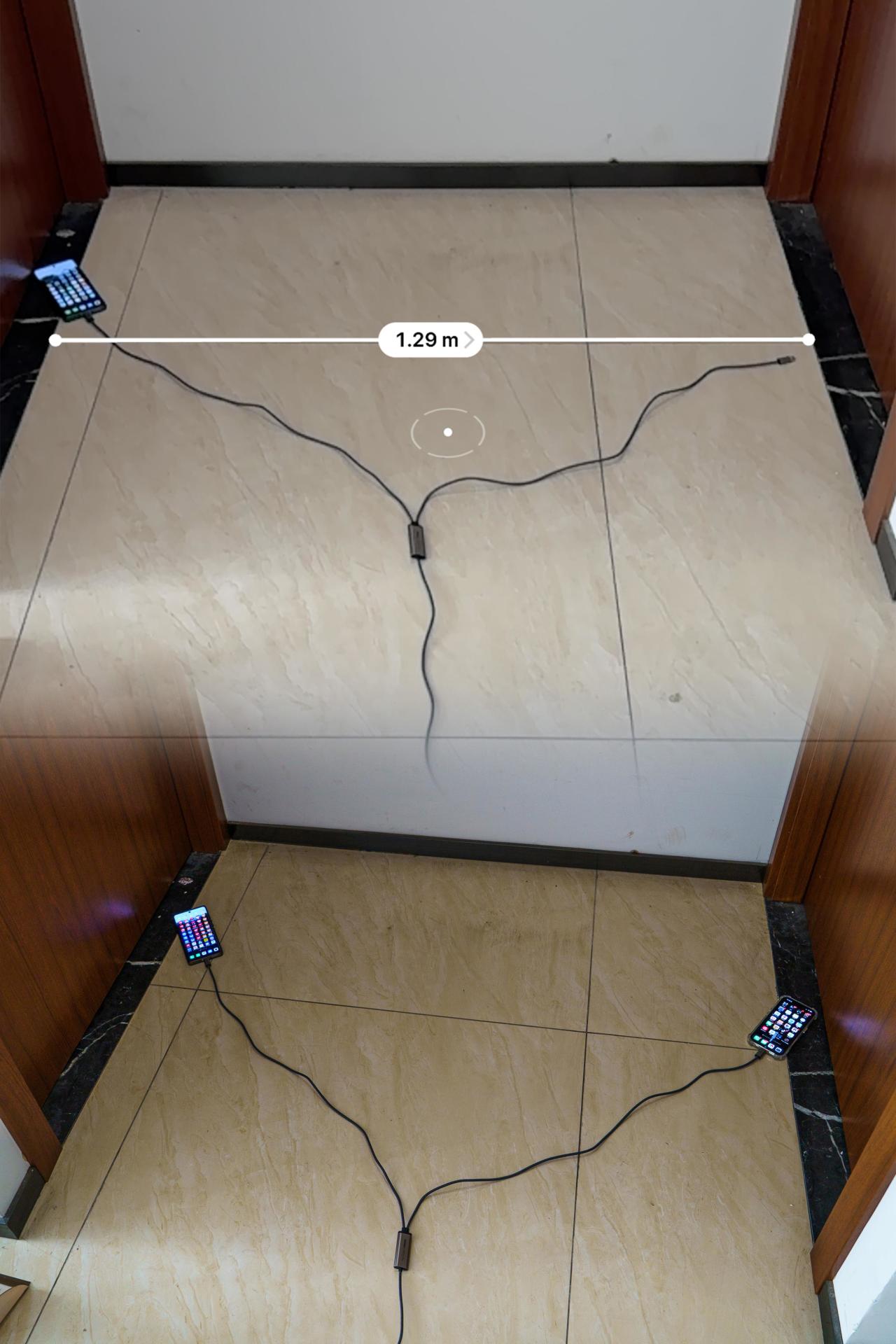 ▼作为一拖二的充电线,它两根分线之间的距离夸张到啥程度?两个人坐在两个相距1米3的隔间门口一起充电都完全没问题,极限间距可以做到1米6,恐怖吧?所以两个人再也不用因为“你先充还是我先充”的问题而“打架”了